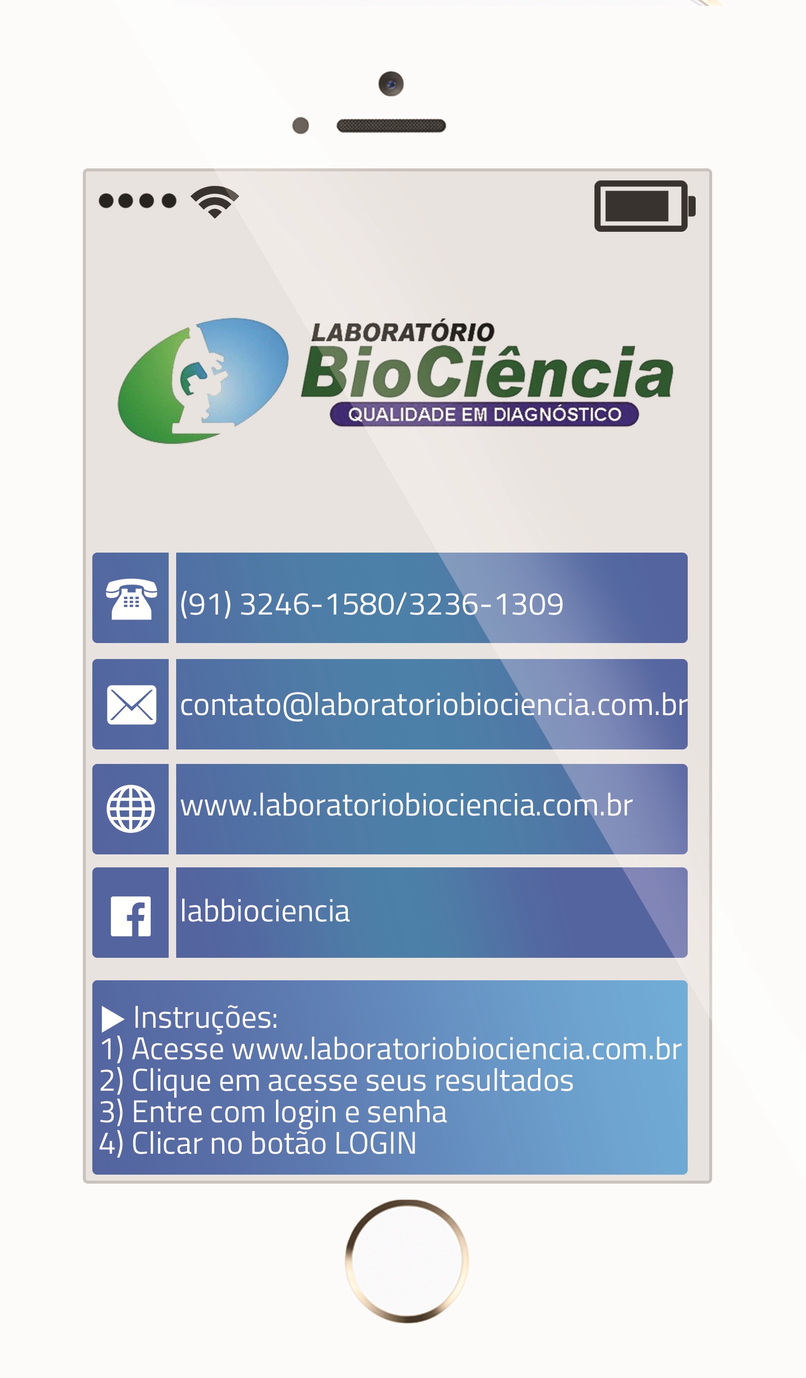 Cartão BioCiência para Acesso ao Resultado On Line Saiba mais... O Laboratório BioCiência disponibiliza seu cartão para Acesso ao Resultado On Line. Solicite o seu cartão e acesse seus resultados de exames laboratoriais, com login e senha pelo site www.laboratoriobiociencia.com.br